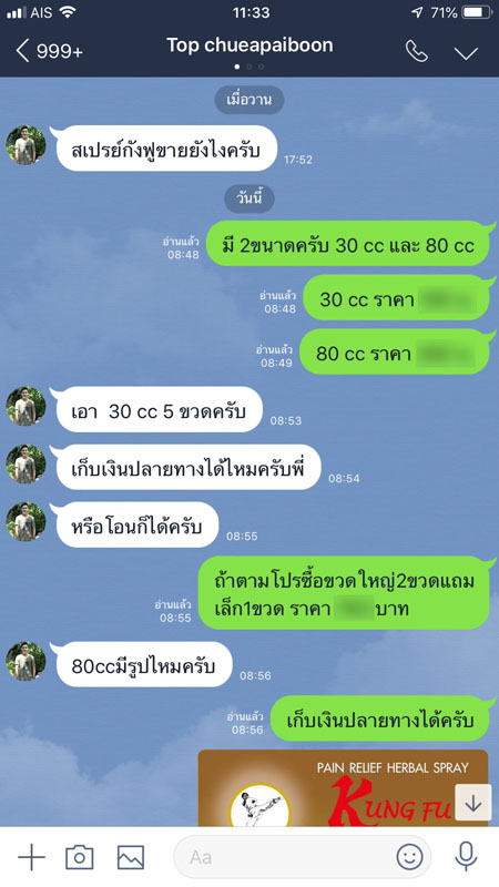 ยาน้ำสเปรย์สมุนไพรแก้ปวดเมื่อย กังฟู